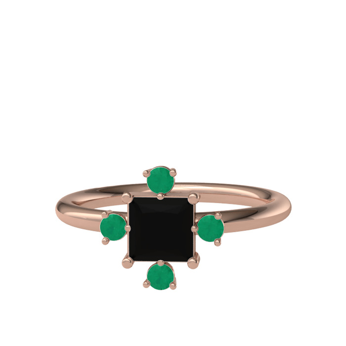 Siyah zirkon ve kök zümrüt 14 ayar rose altın yüzük