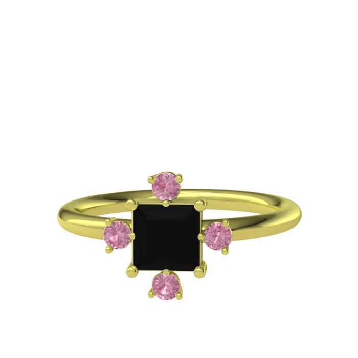 Siyah zirkon ve pembe kuvars 8 ayar altın yüzük
