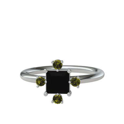 Siyah zirkon ve peridot 18 ayar beyaz altın yüzük