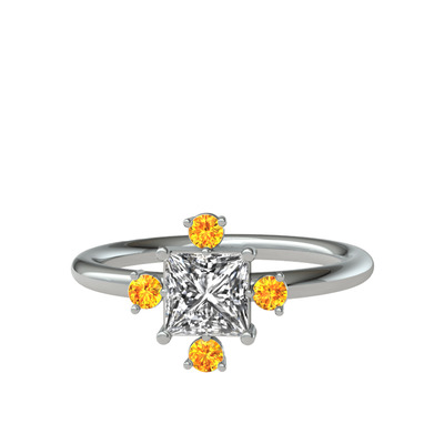 Swarovski ve sitrin 18 ayar beyaz altın yüzük
