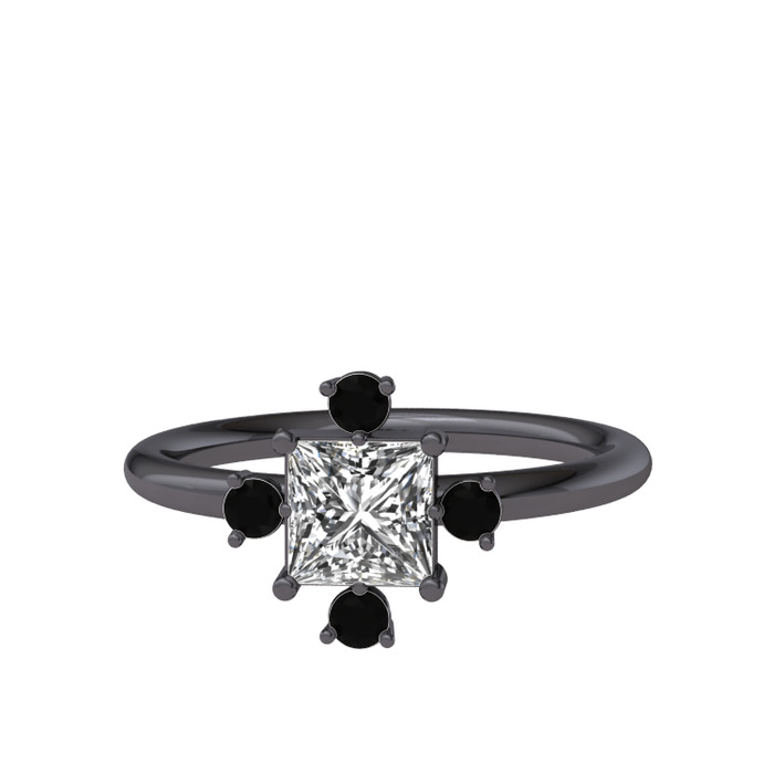 Swarovski ve siyah zirkon 925 ayar siyah rodyum kaplama gümüş yüzük