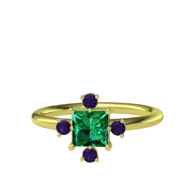 Yeşil kuvars ve ametist 18 ayar altın yüzük