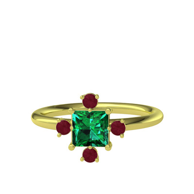 Yeşil kuvars ve kök yakut 14 ayar altın yüzük