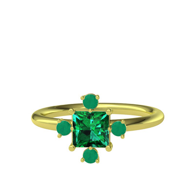 Yeşil kuvars ve kök zümrüt 925 ayar altın kaplama gümüş yüzük