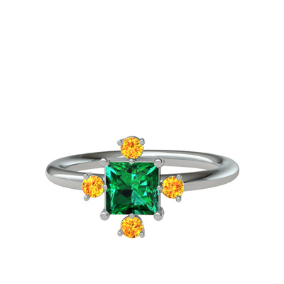 Yeşil kuvars ve sitrin 8 ayar beyaz altın yüzük