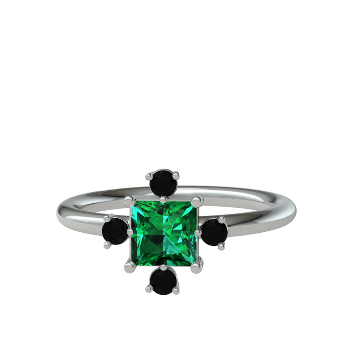 Yeşil kuvars ve siyah zirkon 18 ayar beyaz altın yüzük