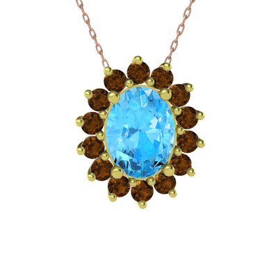 Akuamarin ve dumanlı kuvars 18 ayar altın kolye (40 cm gümüş rolo zincir)