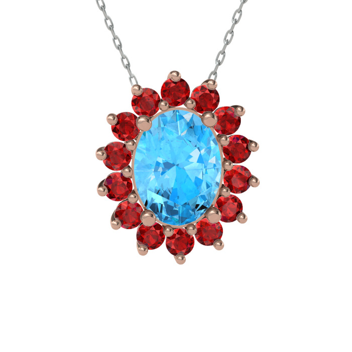 Akuamarin ve garnet 14 ayar rose altın kolye (40 cm beyaz altın rolo zincir)