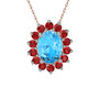 Akuamarin ve garnet 18 ayar beyaz altın kolye (40 cm rose altın rolo zincir)