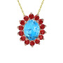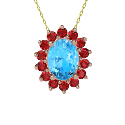 Akuamarin ve garnet 8 ayar rose altın kolye (40 cm altın rolo zincir)