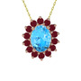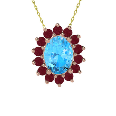 Akuamarin ve kök yakut 18 ayar rose altın kolye (40 cm altın rolo zincir)