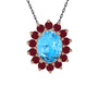 Akuamarin ve kök yakut 8 ayar rose altın kolye (40 cm gümüş rolo zincir)