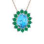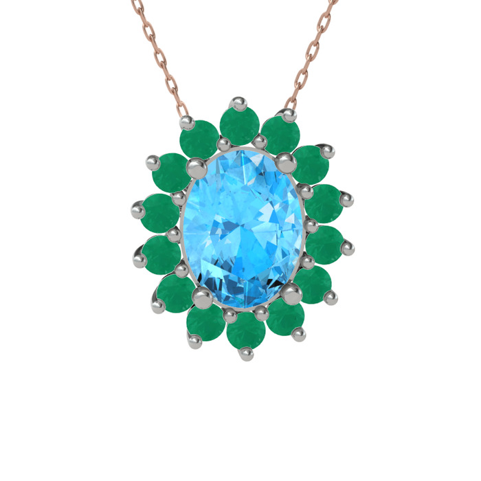 Akuamarin ve kök zümrüt 18 ayar beyaz altın kolye (40 cm rose altın rolo zincir)