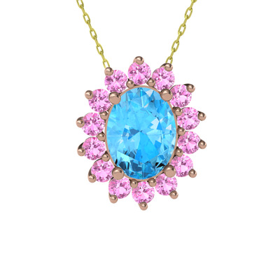 Akuamarin ve pembe kuvars 18 ayar rose altın kolye (40 cm altın rolo zincir)