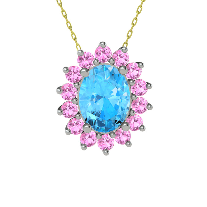 Akuamarin ve pembe kuvars 925 ayar gümüş kolye (40 cm gümüş rolo zincir)
