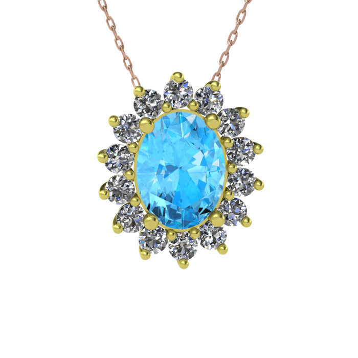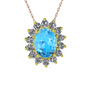 Akuamarin ve pırlanta 8 ayar altın kolye (0.504 karat, 40 cm rose altın rolo zincir)