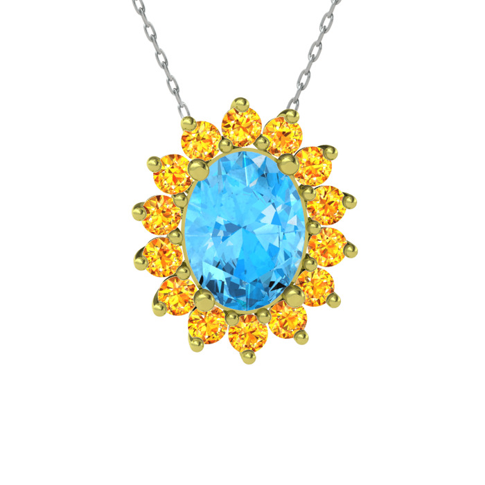 Akuamarin ve sitrin 14 ayar altın kolye (40 cm beyaz altın rolo zincir)