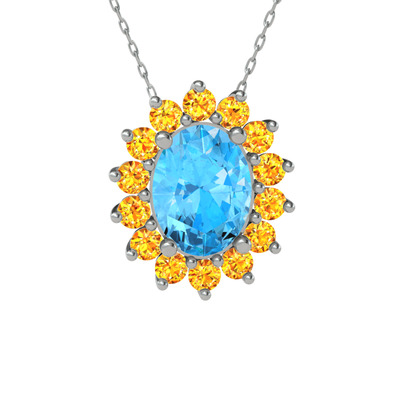 Akuamarin ve sitrin 925 ayar gümüş kolye (40 cm gümüş rolo zincir)