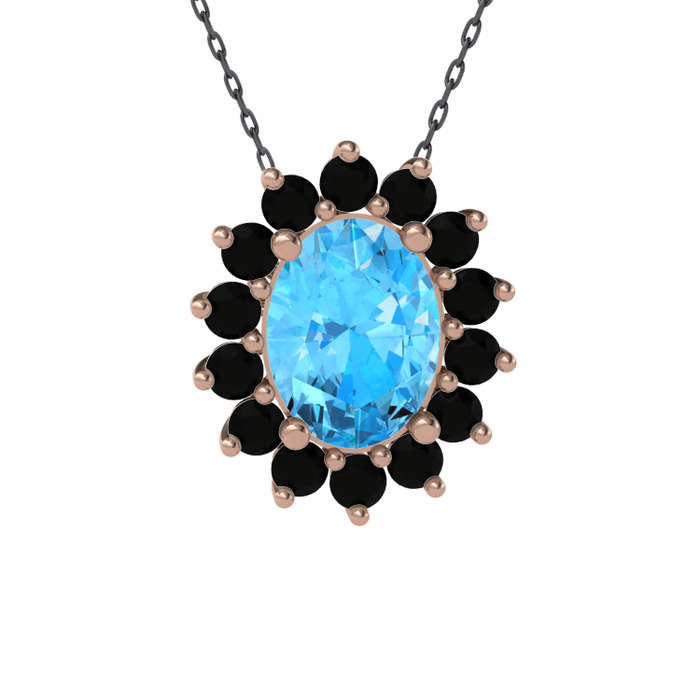Akuamarin ve siyah zirkon 18 ayar rose altın kolye (40 cm gümüş rolo zincir)