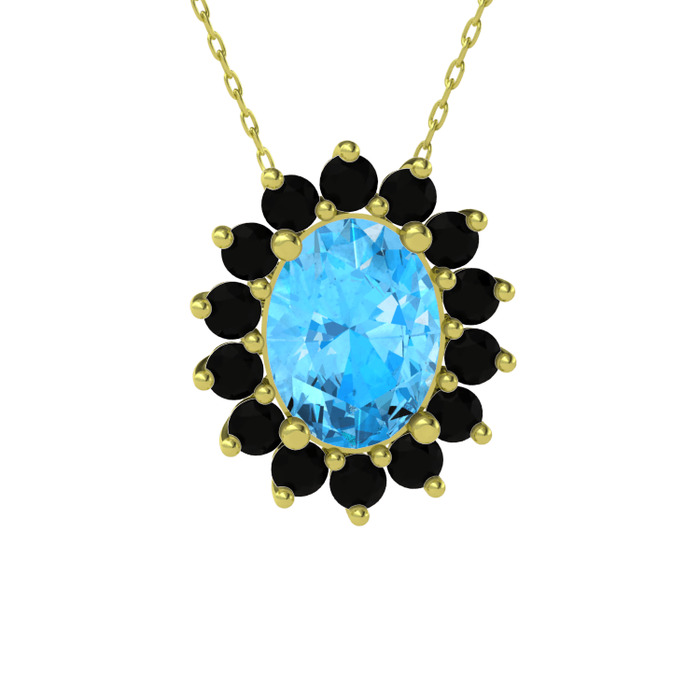 Akuamarin ve siyah zirkon 925 ayar altın kaplama gümüş kolye (40 cm gümüş rolo zincir)