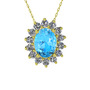 Akuamarin ve swarovski 14 ayar altın kolye (40 cm altın rolo zincir)