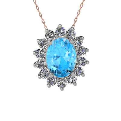 Akuamarin ve swarovski 18 ayar beyaz altın kolye (40 cm gümüş rolo zincir)