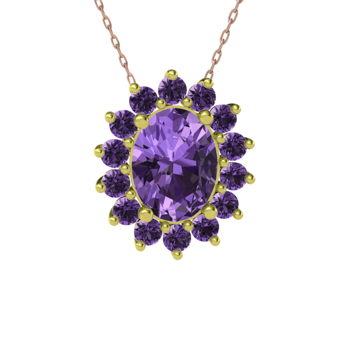 Ametist 14 ayar altın kolye (40 cm rose altın rolo zincir)