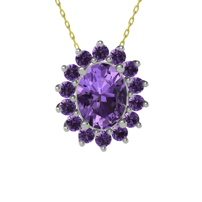 Ametist 8 ayar beyaz altın kolye (40 cm altın rolo zincir)
