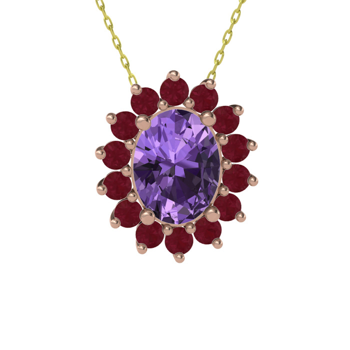 Ametist ve kök yakut 18 ayar rose altın kolye (40 cm altın rolo zincir)
