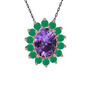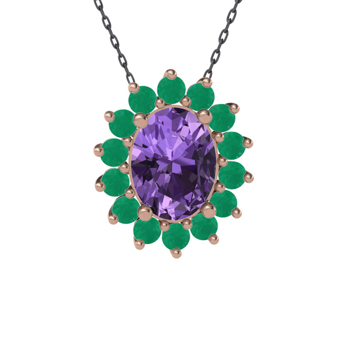Ametist ve kök zümrüt 18 ayar rose altın kolye (40 cm gümüş rolo zincir)