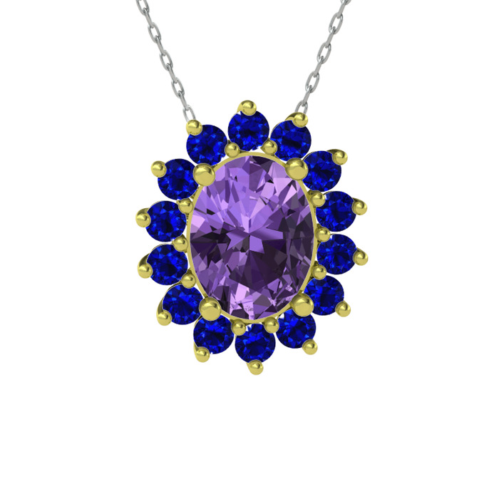 Ametist ve lab safir 14 ayar altın kolye (40 cm beyaz altın rolo zincir)