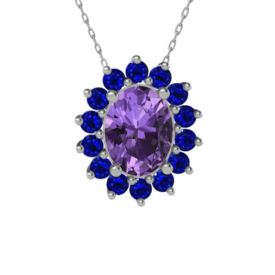 Ametist ve lab safir 14 ayar beyaz altın kolye (40 cm beyaz altın rolo zincir)