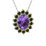 Ametist ve peridot 18 ayar beyaz altın kolye (40 cm gümüş rolo zincir)