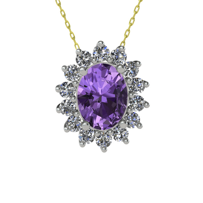 Ametist ve pırlanta 8 ayar beyaz altın kolye (0.504 karat, 40 cm altın rolo zincir)
