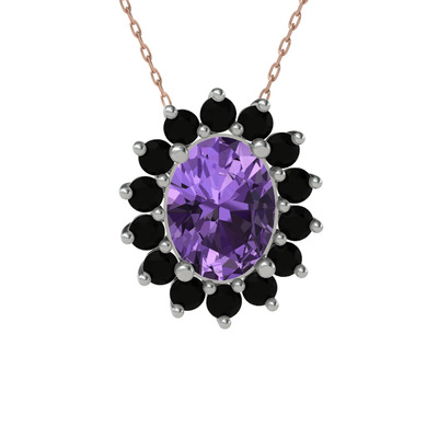 Ametist ve siyah zirkon 8 ayar beyaz altın kolye (40 cm gümüş rolo zincir)