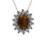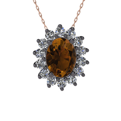 Dumanlı kuvars ve beyaz zirkon 925 ayar siyah rodyum kaplama gümüş kolye (40 cm rose altın rolo zincir)