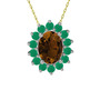 Dumanlı kuvars ve kök zümrüt 925 ayar gümüş kolye (40 cm altın rolo zincir)