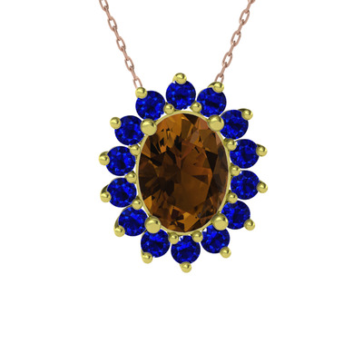 Dumanlı kuvars ve lab safir 18 ayar altın kolye (40 cm gümüş rolo zincir)
