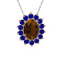 Dumanlı kuvars ve lab safir 18 ayar rose altın kolye (40 cm beyaz altın rolo zincir)