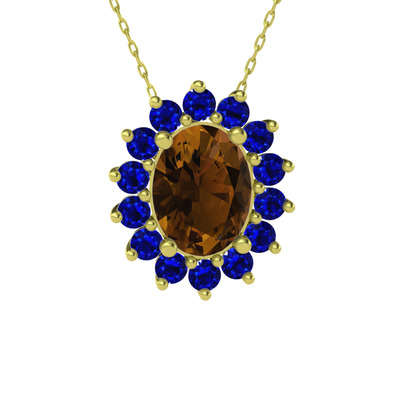 Dumanlı kuvars ve lab safir 8 ayar altın kolye (40 cm gümüş rolo zincir)