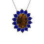 Dumanlı kuvars ve lab safir 925 ayar siyah rodyum kaplama gümüş kolye (40 cm gümüş rolo zincir)