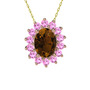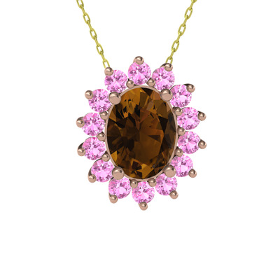 Dumanlı kuvars ve pembe kuvars 14 ayar rose altın kolye (40 cm altın rolo zincir)