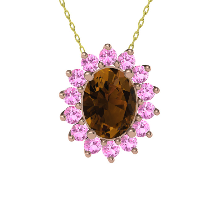 Dumanlı kuvars ve pembe kuvars 14 ayar rose altın kolye (40 cm altın rolo zincir)