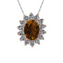 Dumanlı kuvars ve pırlanta 925 ayar rose altın kaplama gümüş kolye (0.504 karat, 40 cm beyaz altın rolo zincir)