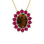 Dumanlı kuvars ve rodolit garnet 18 ayar beyaz altın kolye (40 cm altın rolo zincir)