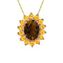 Dumanlı kuvars ve sitrin 14 ayar rose altın kolye (40 cm altın rolo zincir)