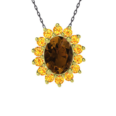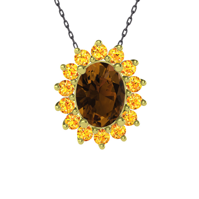 Dumanlı kuvars ve sitrin 8 ayar altın kolye (40 cm gümüş rolo zincir)