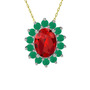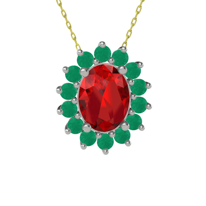 Garnet ve kök zümrüt 8 ayar beyaz altın kolye (40 cm altın rolo zincir)