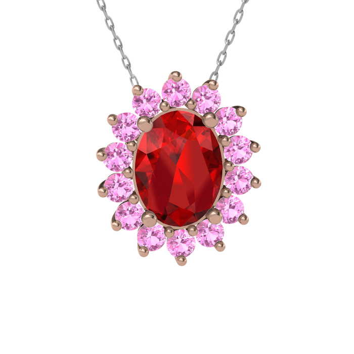 Garnet ve pembe kuvars 14 ayar rose altın kolye (40 cm gümüş rolo zincir)