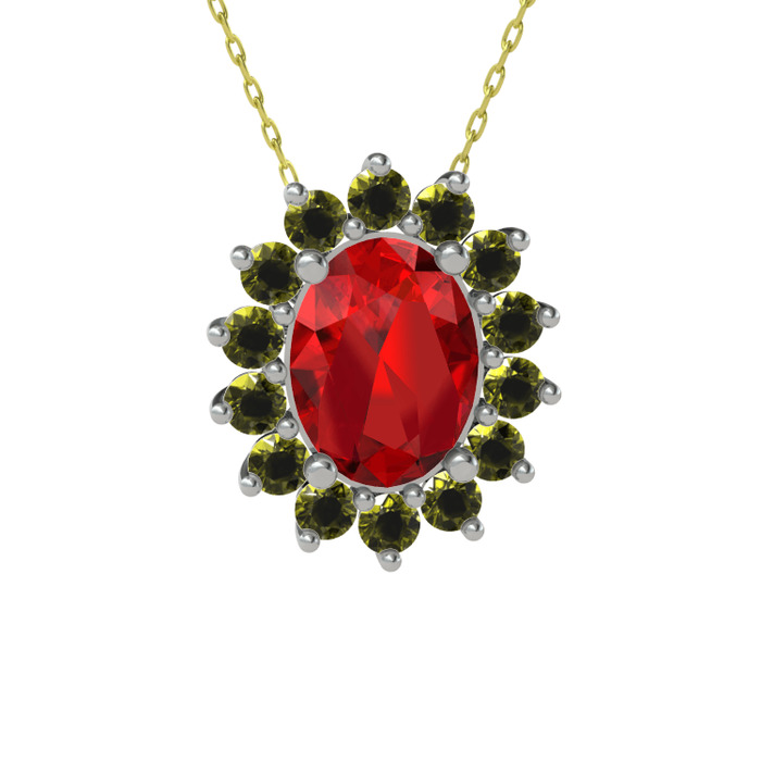 Garnet ve peridot 18 ayar beyaz altın kolye (40 cm altın rolo zincir)